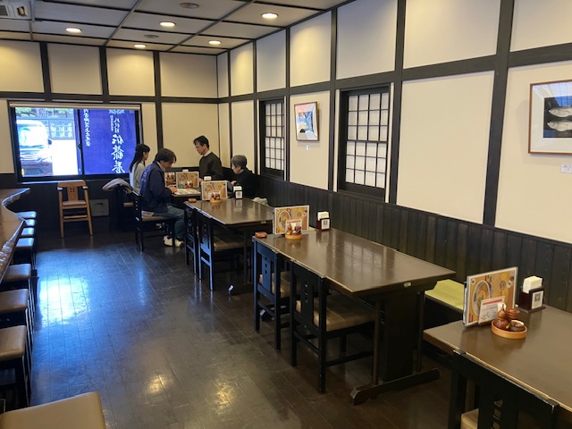 しばらくすると、受付番号が呼ばれたので店内へ。中央に大きな個人用テーブル、壁面両側にテーブル席、壁面奥手前側に小上がり席が用意されているのだ😄。