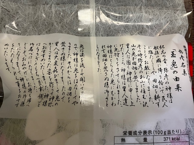 ちなみに袋の裏側には、「玉兎」の由来が記載されているのだ😁。