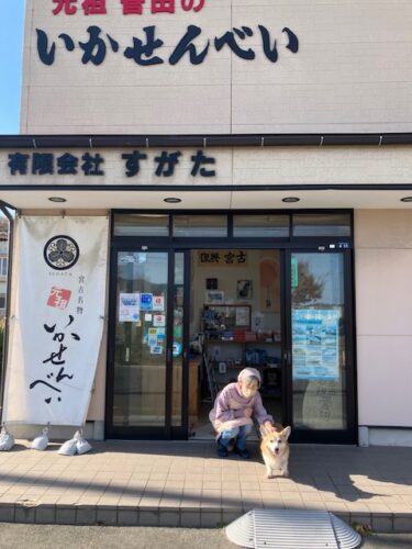 最後の小太郎との記念撮影には、犬好きな女将さんにもご協力頂いたのだ。大きな被害を受けた東日本大震災も乗り越え、宮古で知らない人がいないと言われる程の宮古名物「いかせんべい」の伝統を、できる限り長く守り続けて頂きたいと感じた、こたパパである😉。