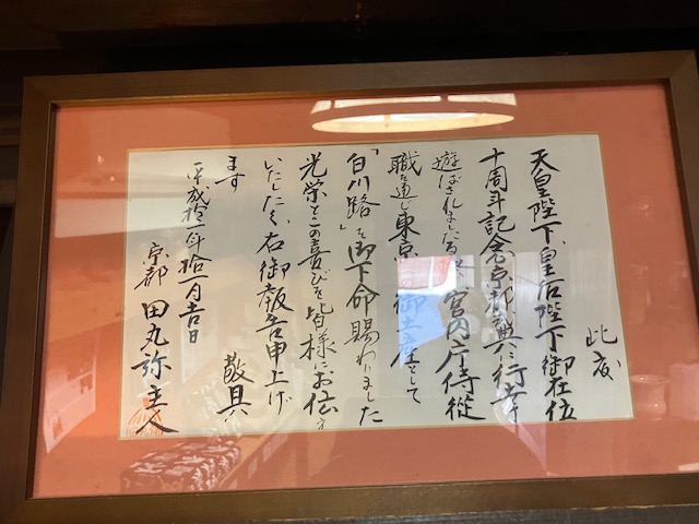 こちらは、平成天皇皇后両陛下在位10周年京都式典の際に、宮内庁に商品を治めた際にご主人が書かれた報告書である😁。