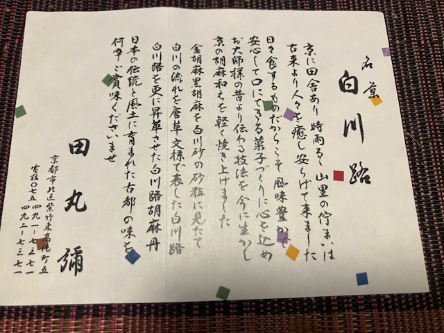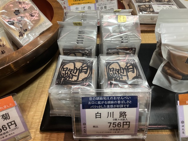 接客頂いた先代17代目にお薦めをお伺いしたところ、代表商品の「白川路」というお煎餅とのこと。そういえば、お店外の蛍光看板にも記載があったなぁ😄。