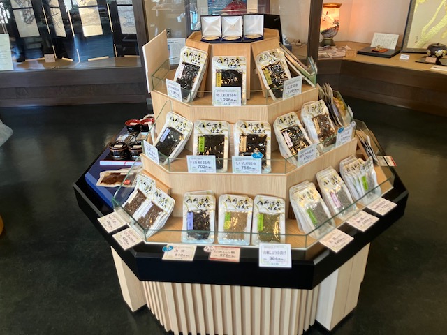 店内中央の各陳列台には、様々な佃煮類や瓶詰の甘露煮詰め合わせなどが陳列されているのだ🙂。