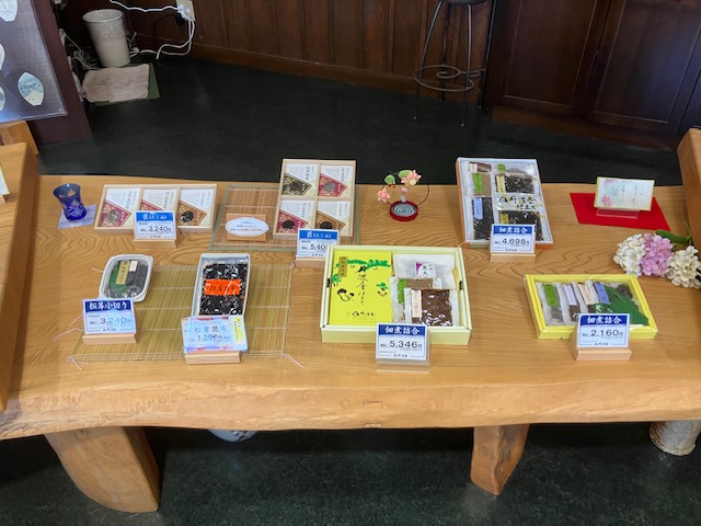 店内最奥部にも木製陳列台が設置されており、やはり様々な佃煮類とその詰め合わせなどが陳列されているのだ😁。