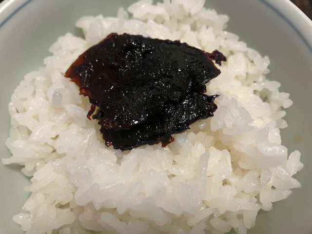 これはもうご飯一択。松茸と北海道羅臼産肉厚昆布を、丸大豆しょうゆと本みりん、灘の清酒で甘辛く煮た松茸昆布は、もはや王道の美味さと呼ぶにふさわしい逸品なのだ。もちろんお茶漬けやおにぎりにも合うだろうな🤤。