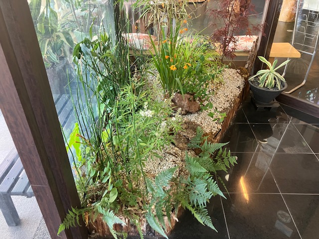 入口右手には、雰囲気のあるL字型休憩スペース😁。