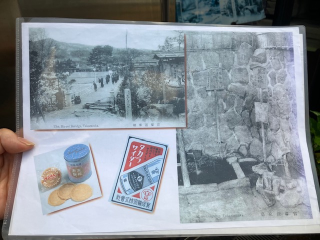 さらにお店の方が昔の写真を持ってきて下さったのだ。こちらはお店横を流れる武庫川に架かる昔の宝来橋と炭酸水湧出地。この当時は蓬莱橋と記載していたんだな🤔。