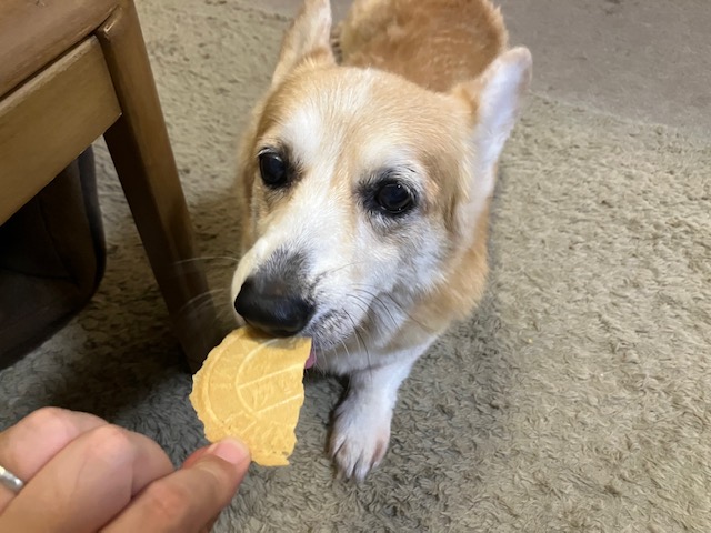 小太郎にもお裾分け。あっという間に1枚食べてしまったな😁。
