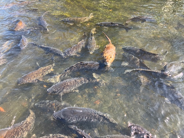 ちなみに川の中には大きな黒鯉がたくさんいるのだが、その中にヌートリアも混じって泳いでいたなぁ😁。