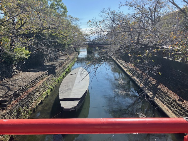 この記念館の横には、趣のある水門川が流れており、みんなで散歩することになったのだ🙂。
