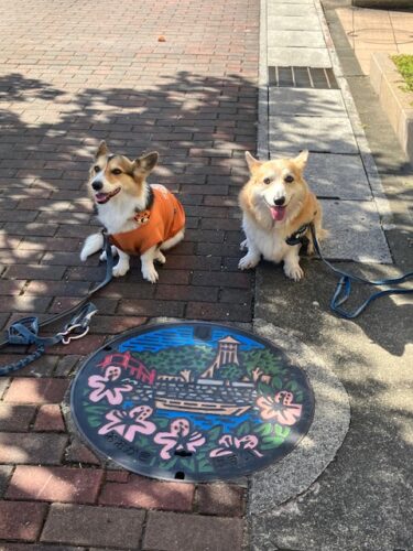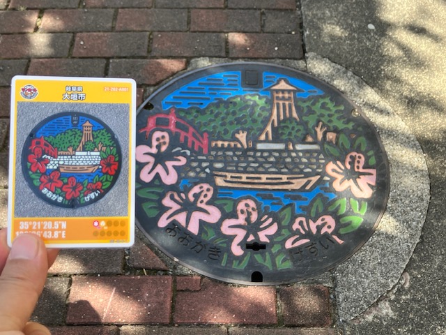 そして、ウルトラワンコさんの案内で、デザイン性の高い大垣のマンホールの一つを訪問。実はウルトラワンコさんの趣味の一つで、ポケモン系を中心に東海地方のデザイン性のあるマンホールを中心に回られているのだ😲。